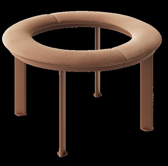 Canoa Studio Table by Marlot Baus uses bulky metal legs to balance a lighter slab of wood, which plays with contrasting materials and thicknesses. marlotbaus.com