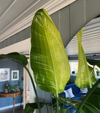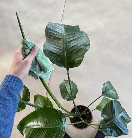 Iblant må vi gi Strelitzia en «hjelpende hånd» når den skyter nye blader. Bruk en fuktig klut med lunkent vann som du legger i hånden. Ta tak i stilken og før kluten opp og ned på det spisse bladet om lag 10–15 ganger. Bruk et fast, men forsiktig grep. Og voilá! Etter et døgn vil bladet åpne seg.