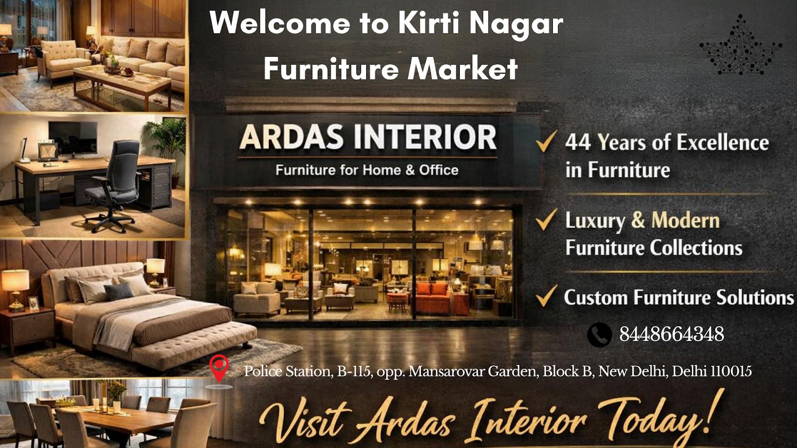 Ardas Interior is a well-known furniture showroom in Kirti Nagar Delhi, trusted by customers for quality and service. Located in the heart of Kirti Nagar Furniture Market, it has built a strong reputation over the years for offering reliable furniture solutions for both homes and offices