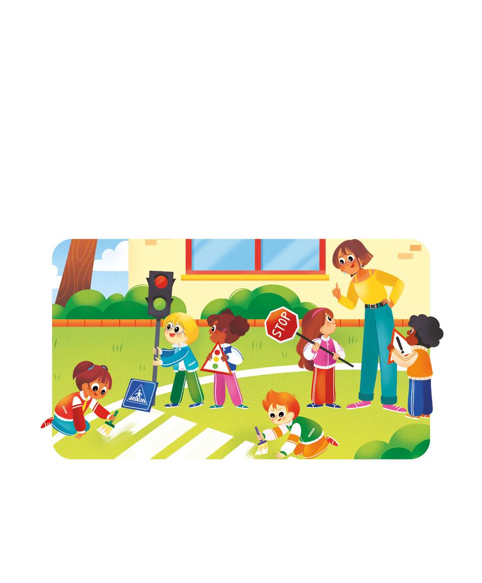Attraversate il percorso rispettando i segnali. Alla fine, raccontate insieme cosa avete imparato e come vi siete sentiti rispettando le regole della strada.