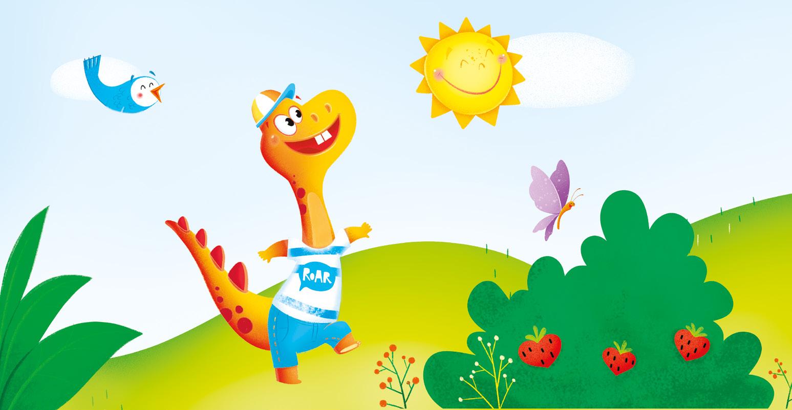 Spesso Dino Sauro con la mamma, la sorellina e il suo papà esplorano il bosco e si soffermano a guardare gli alberi, i fiori colorati e ad ascoltare il canto degli uccellini.