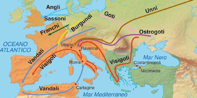 Nell’impero romano, diventato ormai troppo vasto per essere difeso, le popolazioni delle province più lontane da Roma e più esposte agli assalti dei barbari si sentivano abbandonate. Roma infatti non aveva soldati sufficienti da inviare lungo i confini e in diverse zone affidava la difesa del territorio alla costruzione di muri di confine, come il Vallo di Adriano tra l’Inghilterra e la Scozia o il Limes, lungo il Reno e il Danubio.