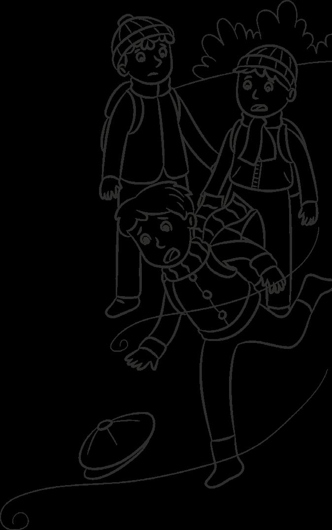 I bambini non possono vedere che cosa è caduto perché il buio è fitto.