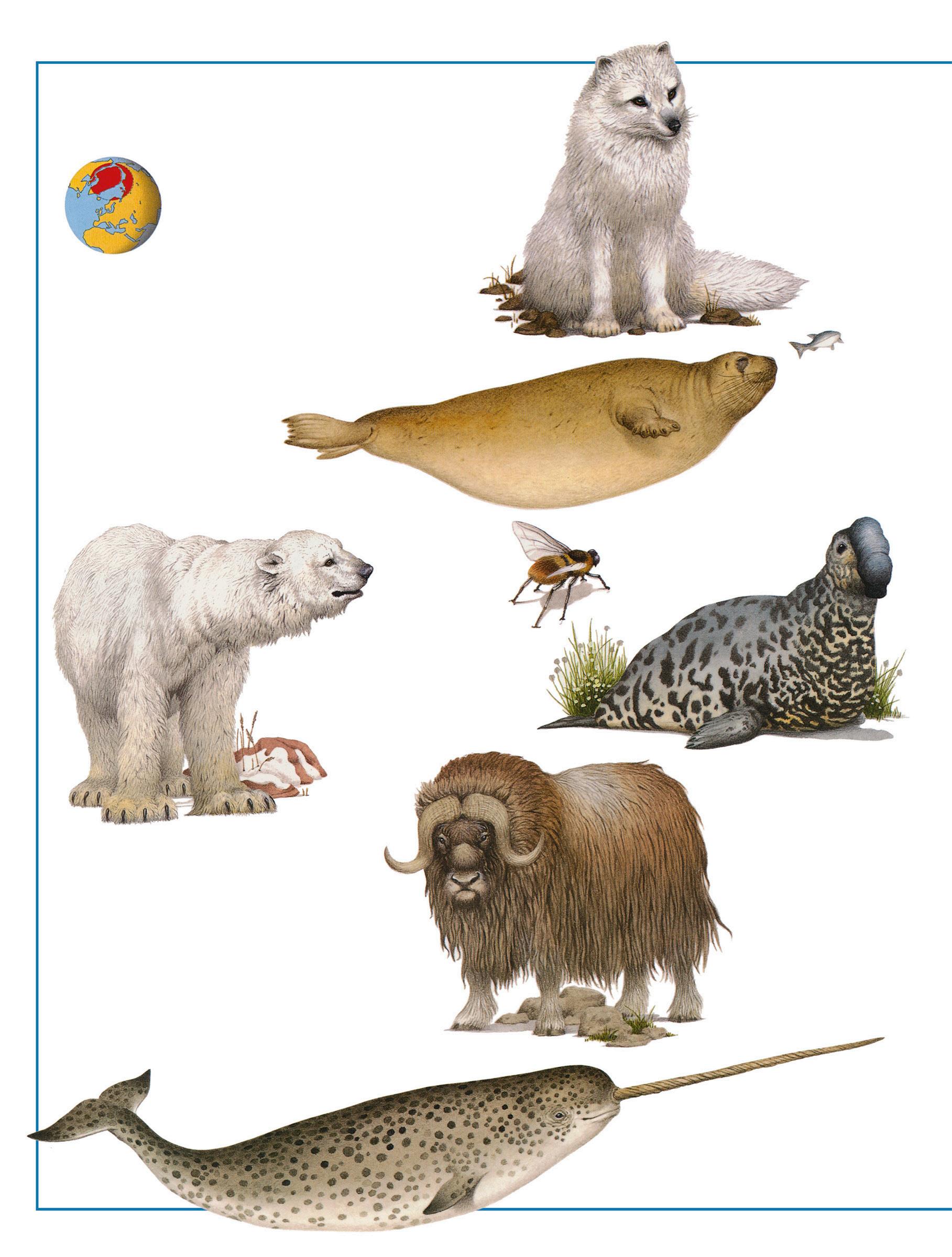 The low temperatures, biting winds, and long, dark winters make the Arctic and Antarctic very harsh environments for animals. Yet many animals do survive there, especially in the seas or on the frozen lands around the Arctic, called the tundra. In the brief summer period, many animals migrate to the Arctic to breed and raise their young.