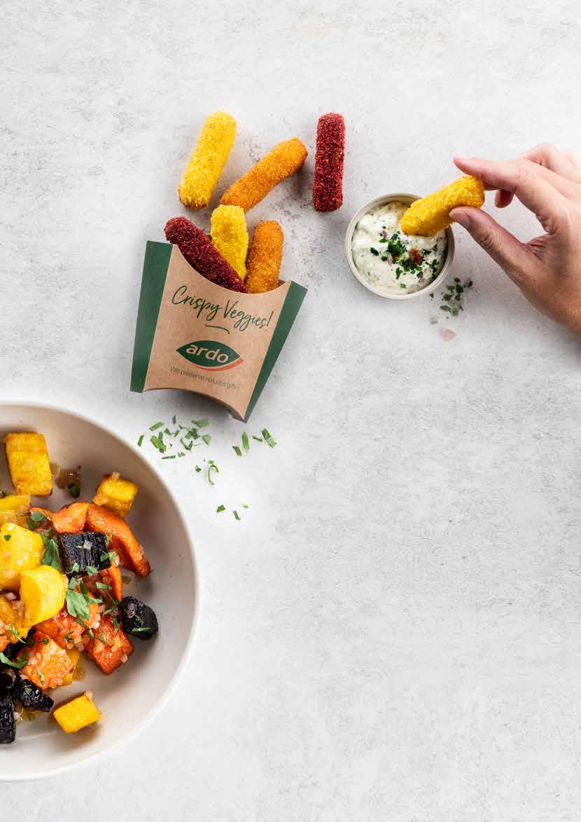 Nos complace presentar dos novedades de producto este otoño. Con nuestras chunks salteados de zanahorias de colores y nuestro trío de crujientes fingers vegetales, ofrecemos un complemento sabroso y colorido a nuestra gama. Descúbrelo todo en las siguientes páginas.