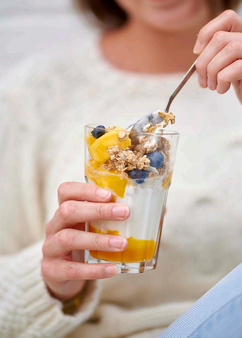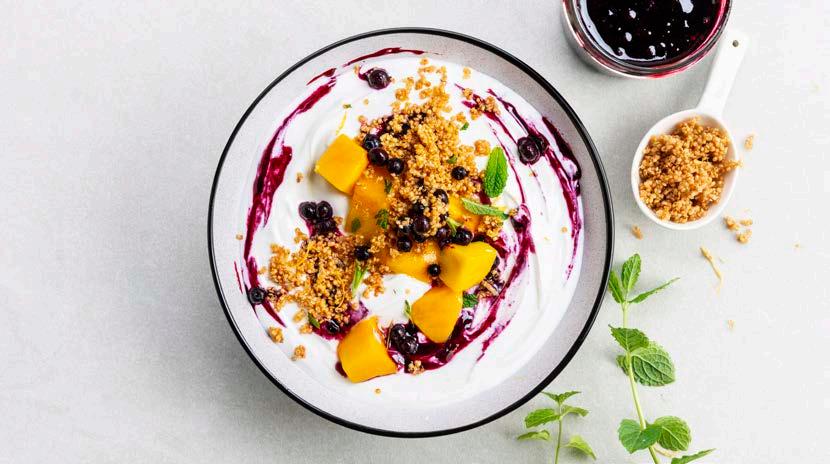 Yoghurt ‘on the go’ met mango fruitpuree en wilde bosbessen