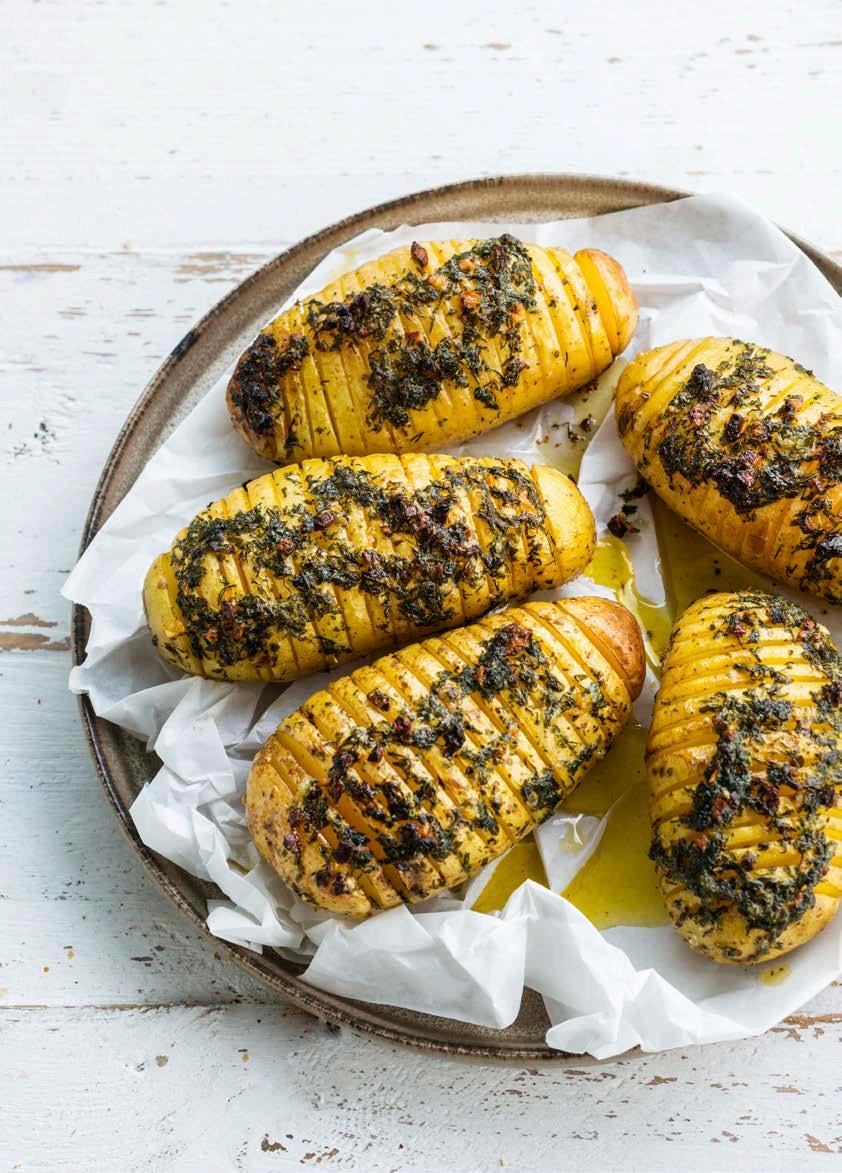 Zoete aardappelpartjes met gepekelde rode ajuin en cacioricotta