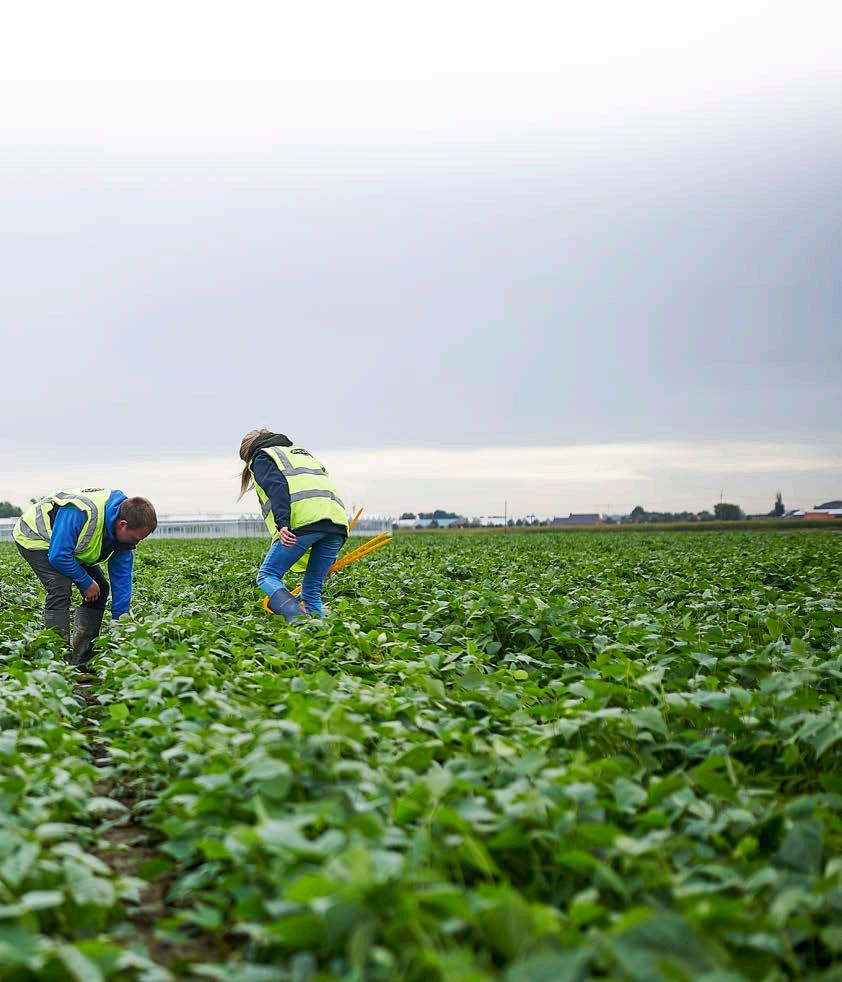 - De agronomen inspecteren de velden samen met de telers regelmatig op onkruid, ziekten en insectenplagen. Waar nodig worden er weloverwogen gewasbeschermingsmiddelen ingezet.