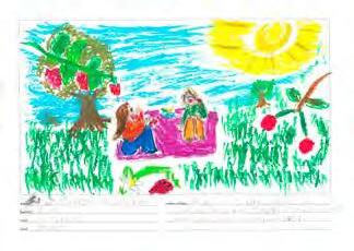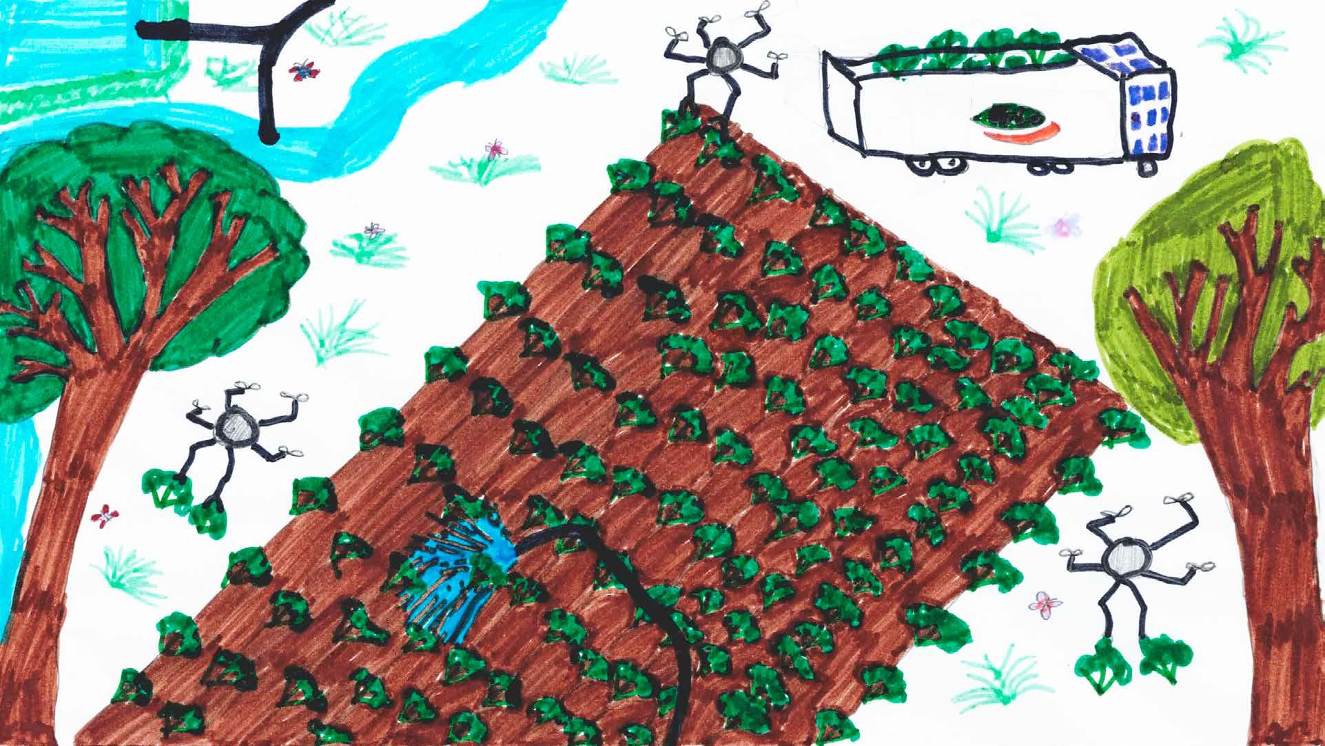 We asked the children to depict what kind of food we will be serving in the future, how farmers will be working the land to grow healthy vegetables, fruit and herbs, what healthy eating means for them or what the food of the future will look like. Lots of children were inspired to make these beautiful drawings.