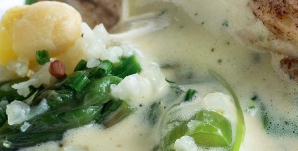 Gebackene Jakobsmuscheln mit Ardos Quinoa, tricolore Linsenmischung und Erbsenpüree