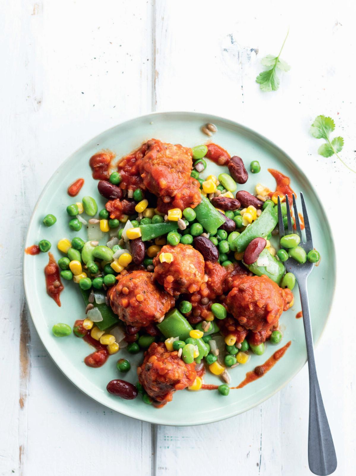 Vegetarische Bällchen mit Wellness-Gemüsemischung