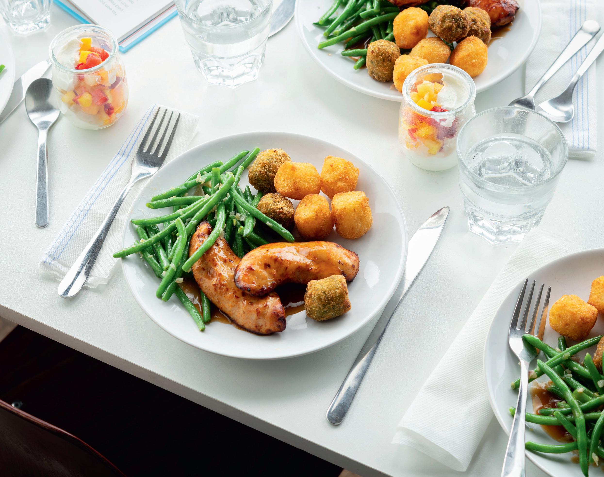 Der Geschmack des Sommers im Winter mit Ardos grünen Bohnen und Gemüsebällchen, Hühnchen und Bratensauce