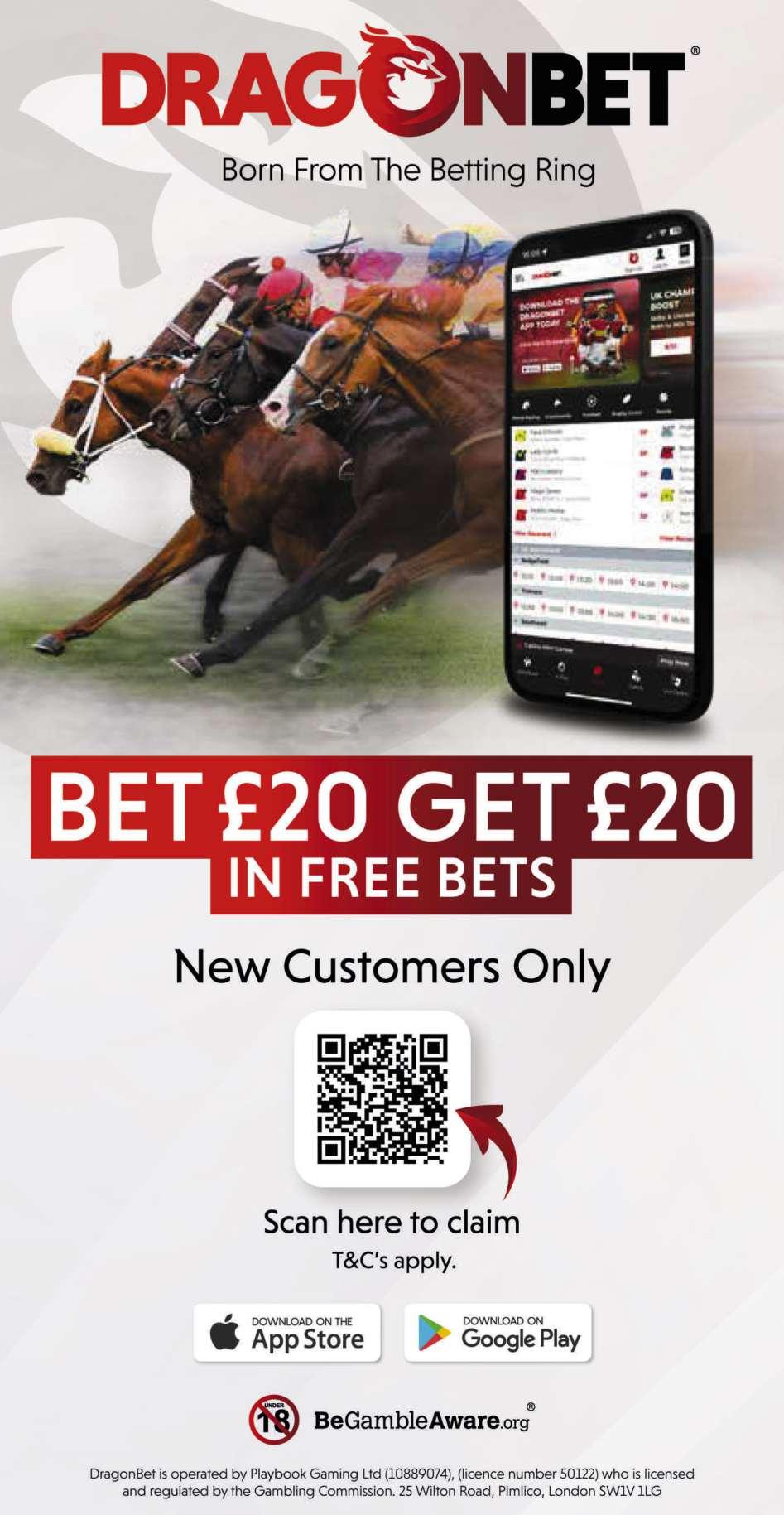 Fourth Race 2.28 - THE DRAGONBET - BORN FROM THE BETTING RING HANDICAP STAKES (CLASS 6) Distributed in accordance with the Stakes and Prize Money Code. £2983 to the winning horse The second to receive £1399, the third £699, the fourth £349 and the fifth £174. for three yrs old and upwards, Rated 46-52 (also open to such horses rated 53 and 54; such horses rated 45 and below are also eligible - see Standard Conditions). £28 stake if the horse is rated 46 or higher, or £5 stake if the horse is rated 45 or lower with £23 extra if the horse is declared to run Declare by 10.00 a.m. October 29th. Lowest weight: 4-y-o and up 9st 3lb; 3-y-o 9st 2lb Highest weight: 4-y-o and up 9st 9lb; 3-y-o 9st 8lb Penalties, after October 19th, 2024, for each race won 3yo 6lb; 4yo to 6yo 5lb; 7yo and up 4lb. DragonBet have kindly sponsored this race and will give a prize to the person who, in their opinion, is responsible for the horse judged to be the best turned out in this race 20 entries, 3 at £5 and 17 at £28 - Closed October 25th, 2024. Owners Prize Money. Winner £2354; Second £1177; Third £588; Fourth £294; Fifth £147. (Penalty Value £2983.38) Weights raised 2lb and paragraphs 27 to 31 of the Weights and Handicapping Code complied with where applicable. SS