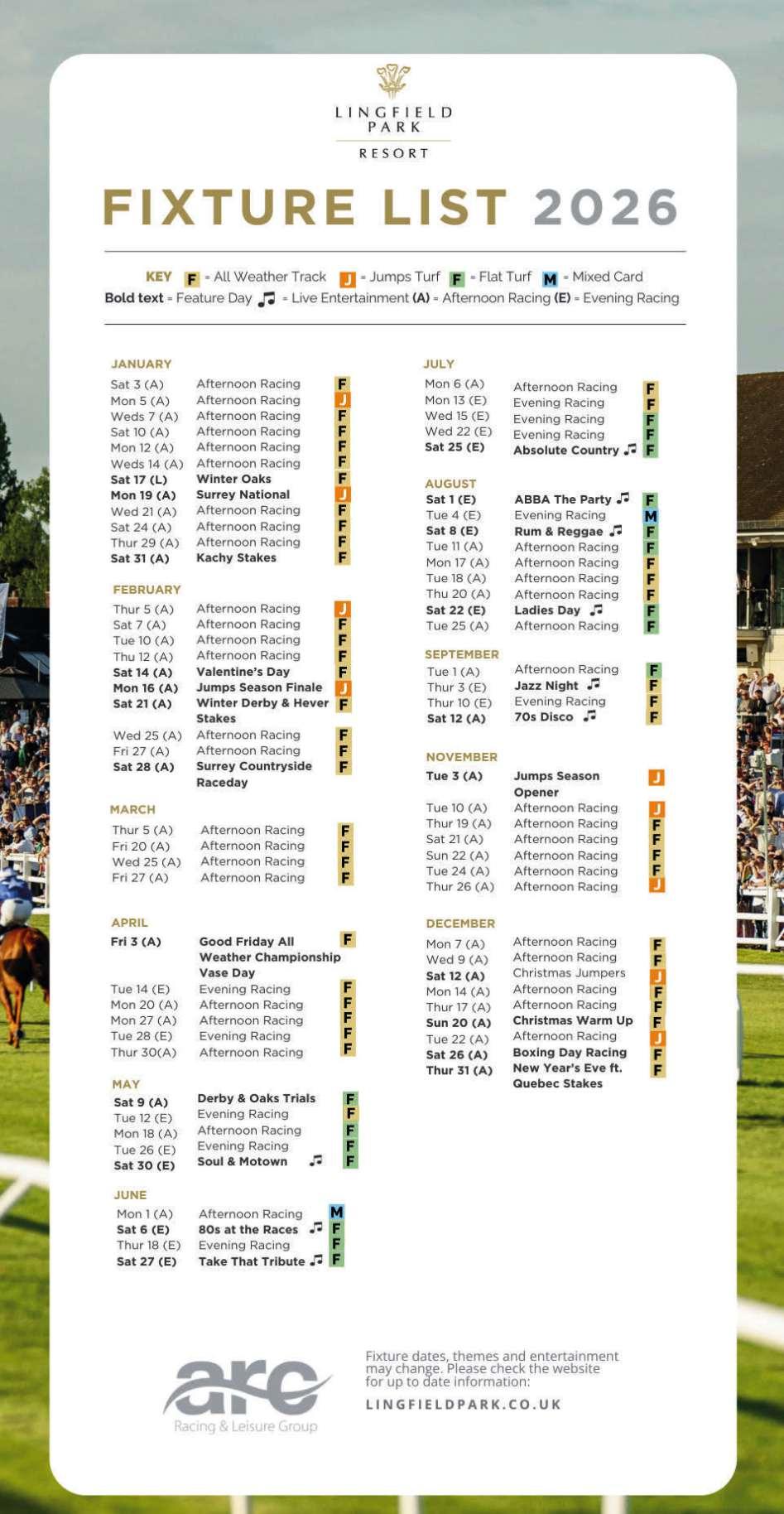 Why not visit us online for full fixture and event listings at www.lingfieldpark.co.uk.