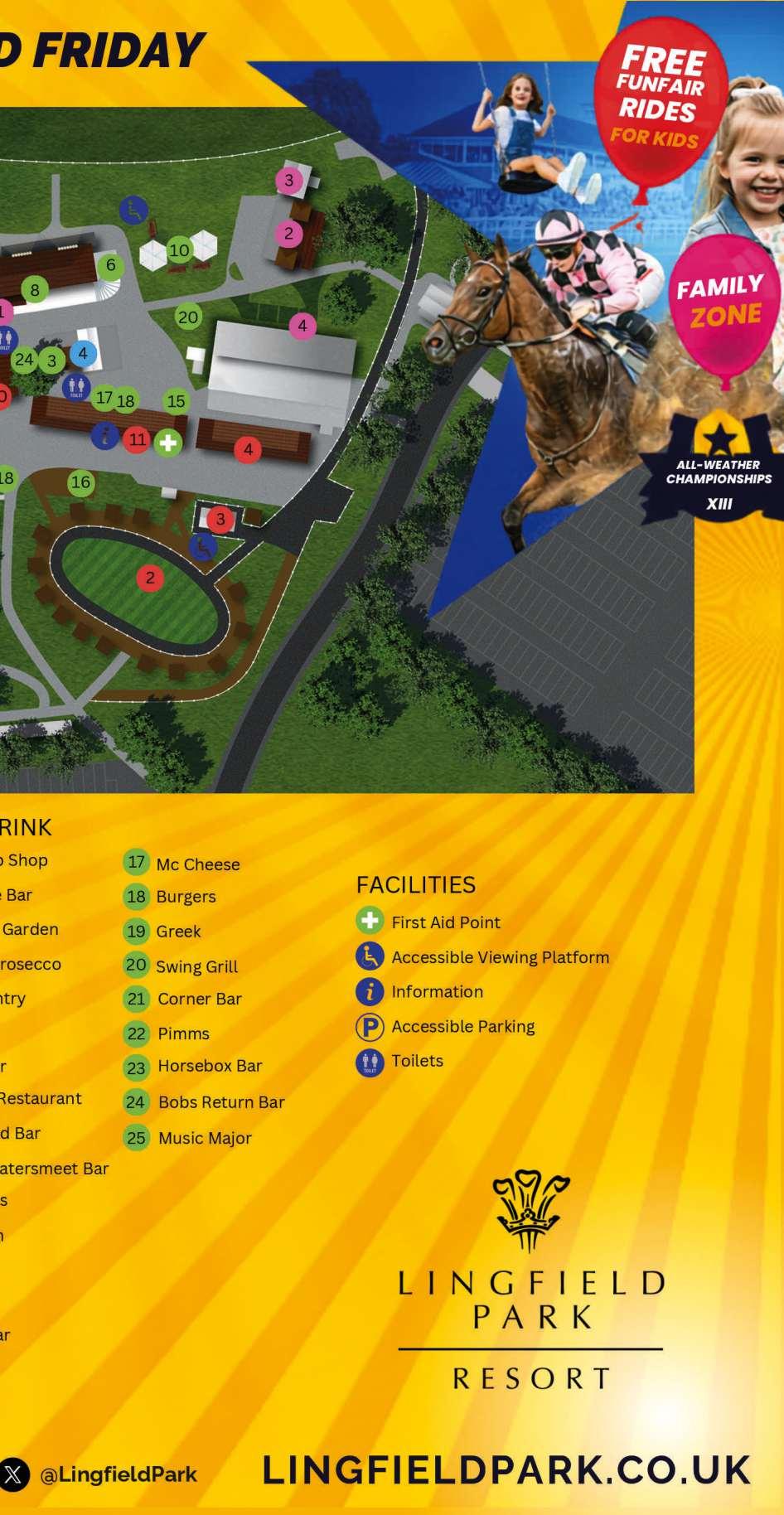 On behalf of the entire Lingfield Park team, we hope you enjoy your Good Friday with us. We look forward to welcoming you back for our next feature raceday, the Derby & Oaks Trial on Saturday 9th May, and for an exciting summer ahead with the return of our popular Summer Sounds series from May to September combining racing, live music and entertainment Enjoy the afternoon and the racing to come!