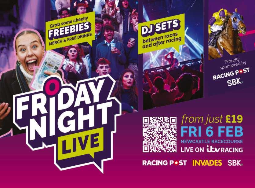 Sixth Race 3.35 - THE VIRGIN BET SUPPORTS SAFE GAMBLING HANDICAP STEEPLE CHASE (CLASS 3) (GBB RACE) Distributed in accordance with the Stakes and Prize Money Code. £6178 to the winning horse The second to receive £2843, the third £1421, the fourth £711 and the fifth £354. for five yrs old and upwards, Rated 0-125 (also open to such horses rated 126 and 127 - see Standard Conditions). £58 stake if the horse is rated 99 or higher, or £11 stake if the horse is rated 98 or lower with £47 extra if the horse is declared to run Declare by 10.00 a.m. January 25th. Penalties, after January 17th, 2026, for each steeple chase won 7lb. Virgin Bet will give a prize to the person who, in their opinion, is responsible for the horse judged to be the best turned out in this race 13 entries at £58. - Closed January 21st, 2026. Owners Prize Money. Winner £4726; Second £2362; Third £1182; Fourth £591; Fifth £295. (Penalty Value £6178.77) Weights raised 6lbs and paragraph 34 of the Weights and Handicapping Code complied with where applicable. SEE PAGE 18 FOR THIS RACE.