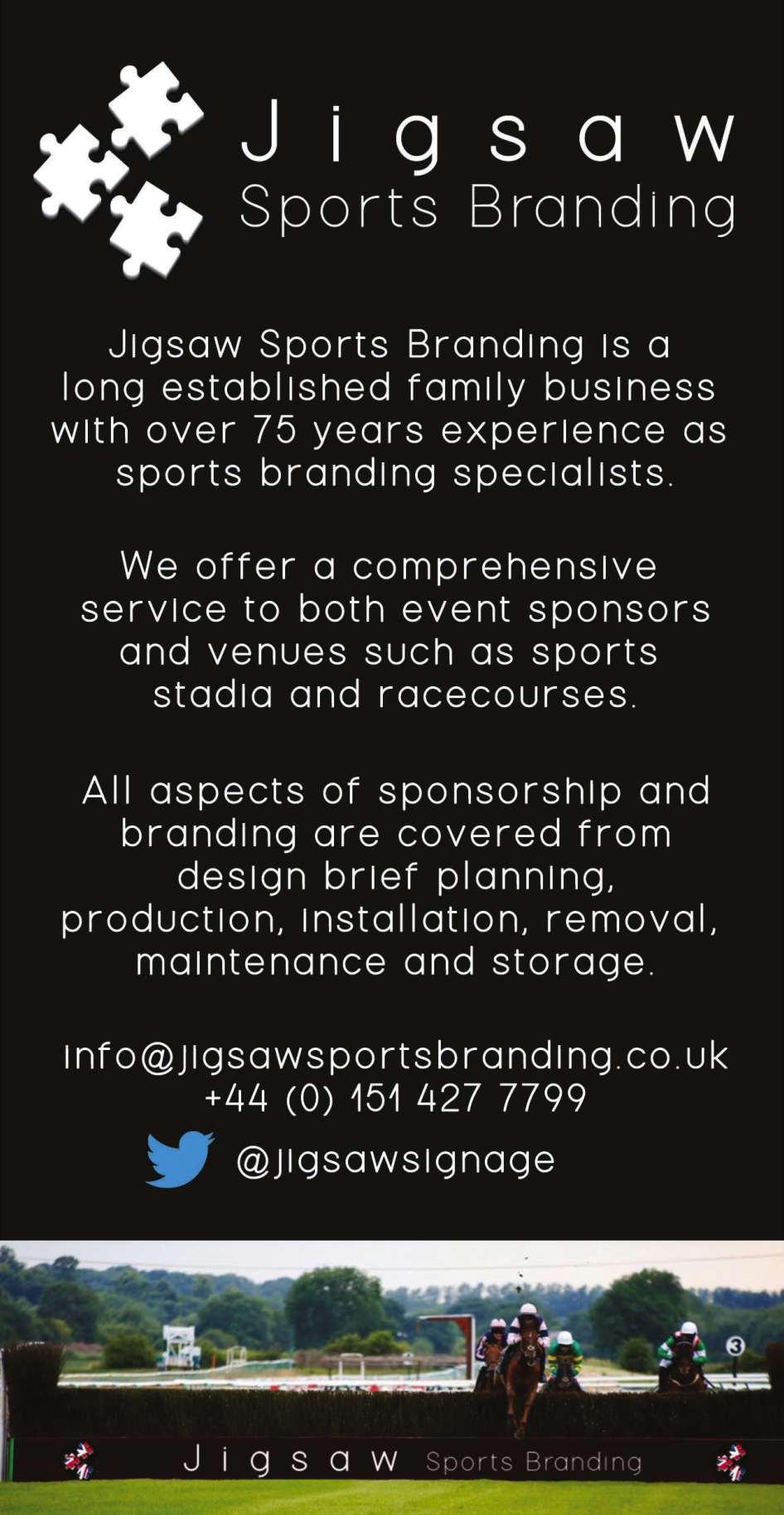 Second Race 2.30 - THE JIGSAW SPORTS BRANDING NOVICES’ LIMITED HANDICAP STEEPLE CHASE (CLASS 3) (GBB RACE) Distributed in accordance with the Stakes and Prize Money Code. £6337 to the winning horse The second to receive £2916, the third £1458 and the fourth £729. for novice five yrs old and upwards. £60 stake if the horse is rated 130 or higher, or £12 stake if the horse is rated 129 or lower with £48 extra if the horse is declared to run Declare by 10.00 a.m. April 10th. Lowest weight 10st 5lb; Highest weight 11st 10lb Penalties, after April 1st, 2023, for each steeple chase won 7lb (20 lb weight range). The sponsors have kindly provided a prize for the groom in charge of the horse judged to be the best turned out. 11 entries, 7 at £12 and 4 at £60. - Closed April 6th, 2023. Owners Prize Money. Winner £4847; Second £2423; Third £1212; Fourth £606. (Penalty Value £6337.20)