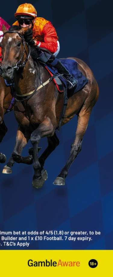 Ninth Race 8.30 - THE WEEKLY £5 FREE BET WITH BETUK HANDICAP STAKES (CLASS 5) Distributed in accordance with the Stakes and Prize Money Code. £3716 to the winning horse The second to receive £1743, the third £871, the fourth £435 and the fifth £217. for three yrs old and upwards, Rated 49-68 (also open to such horses rated 69 and 70; such horses rated 48 and below are also eligible - see Standard Conditions). £35 stake if the horse is rated 49 or higher, or £7 stake if the horse is rated 48 or lower with £28 extra if the horse is declared to run Declare by 10.00 a.m. October 22nd. Lowest weight: 4-y-o and up 8st 9lb; 3-y-o 8st 4lb Highest weight: 4-y-o and up 10st; 3-y-o 9st 9lb Penalties, after October 12th, 2024, for each race won 3yo 6lb; 4yo to 6yo 5lb; 7yo and up 4lb. BetUK has kindly sponsored this race and will provide the person responsible for the horse judged to be the best turned out with £25. 20 entries at £35. - Closed October 18th, 2024. Owners Prize Money. Winner £2932; Second £1466; Third £733; Fourth £366; Fifth £183. (Penalty Value £3716.14) 3 Eliminated Under Rules (I)9 and (I)10. SS