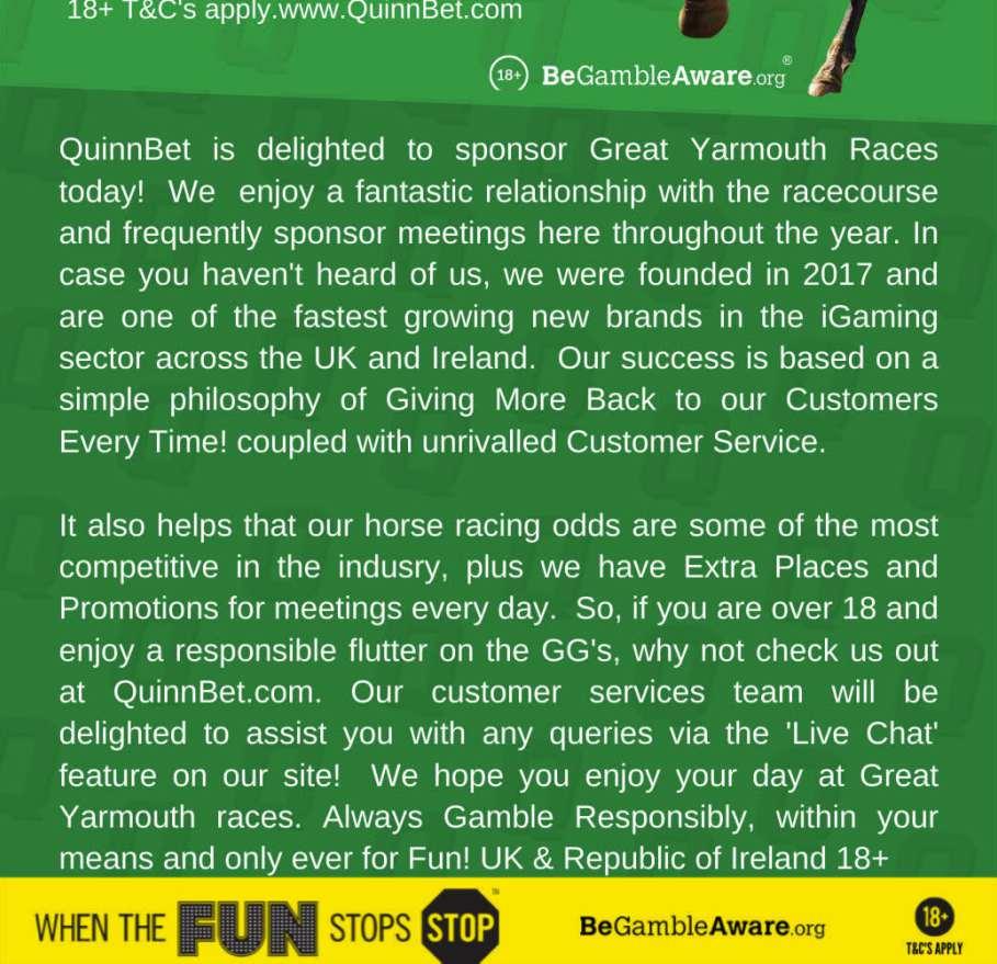 The Great Yarmouth Racecourse Executive would like to thank our sponsors and wish them an enjoyable and prosperous day’s racing.