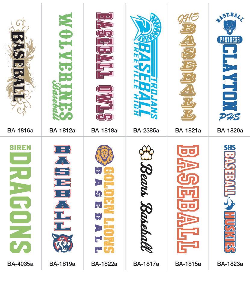 designs, script fonts and/or names smaller than 2”. gold vegas copper bronze red pink cherry eggplant purple lavender navy royal holo pink *translucent aqua emerald kelly black si ver multi dark white neon yellow neon pink neon orange neon purple neon blue multi light ADDITIONAL FONTS AVAILABLE Braves Bullpen Cachet College Spartan Impact Revue Redskins T E AM, NAME AND NUMBER F ON T OP T IONS NUMBER F ON T OP T IONS All Sport Blitz Flare Brush Rally S T YLE OP T IONS Thunder Victory Wedge