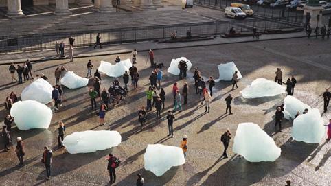 The Ice Watch symbolizes global warming and the fading of natural memories through the gradual melting of ice, reminding humanity of the urgency of environmental change and the irreversibility of time.
