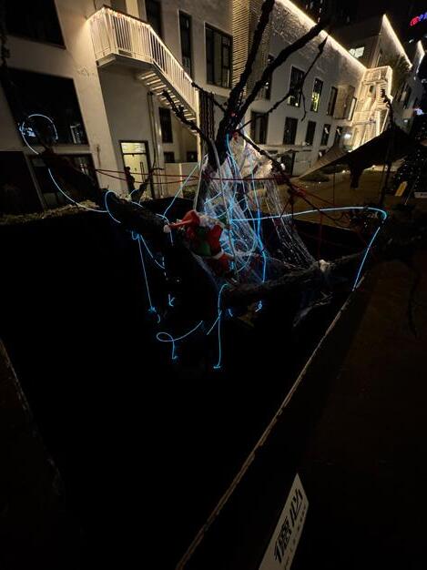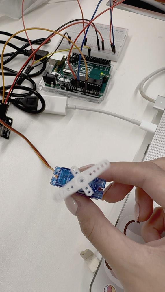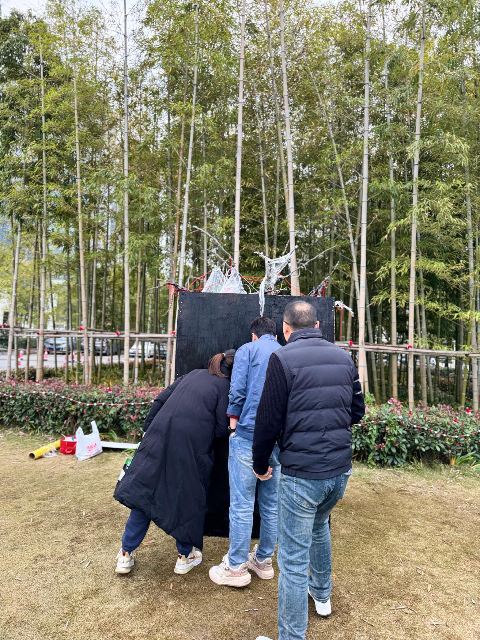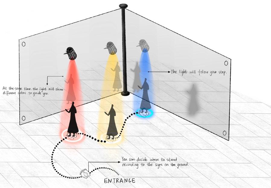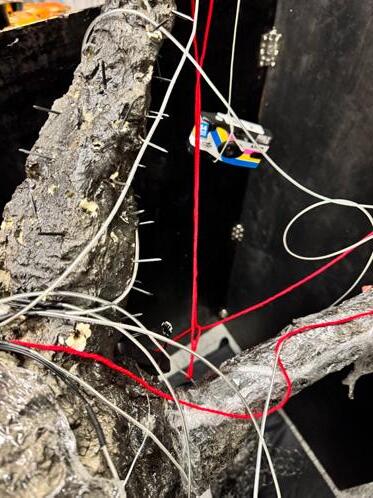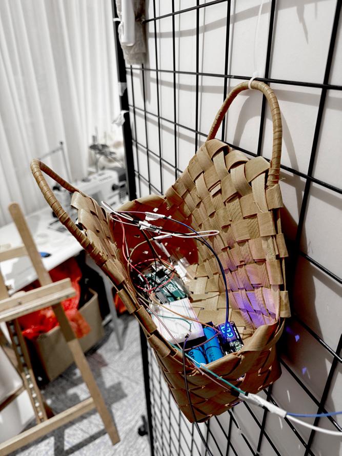 This installation combines Arduino to control servos and ultrasonic sensors, enabling interaction with the audience. When a person approaches, objects hanging from the tree descend. The use of plastic wrap symbolizes the passage of time and the fragility of materials, while the red thread represents the inseparable emotional bond between humans and memory. The structure and texture of wire and gauze further emphasize the aging of the tree and the marks of environmental pollution. Through the integration of these elements, the visual expression of historical depth is enhanced, profoundly re�lecting the dual themes of environmental degradation and memory decline in modern society.
