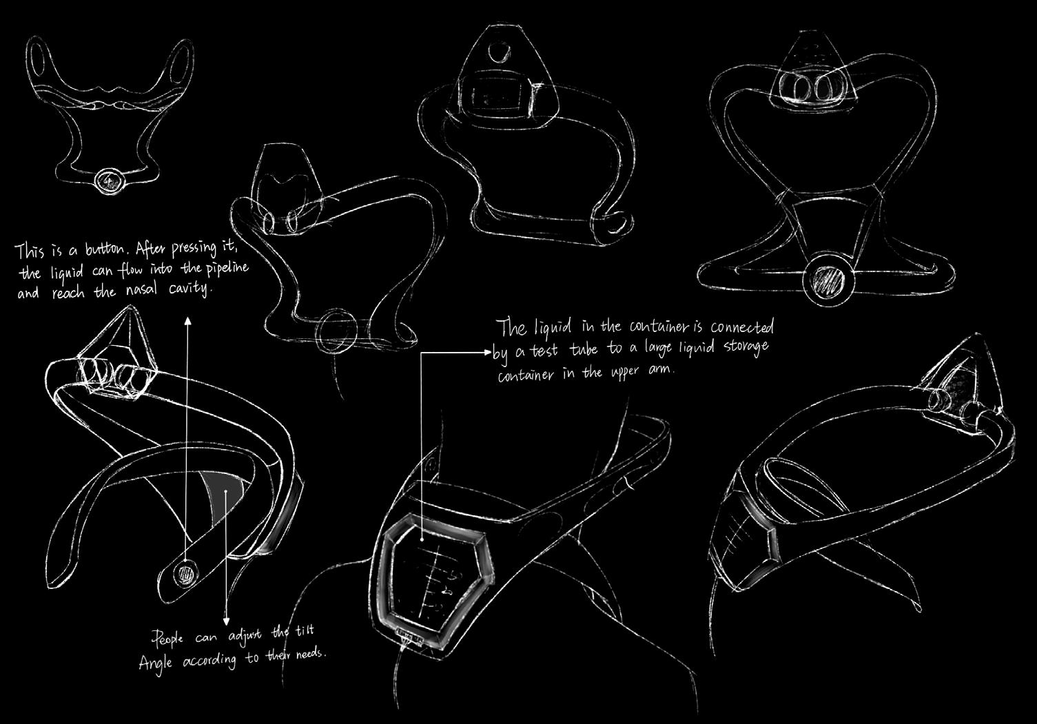 Through my research on various wearable devices, explored different design styles for the aforementioned body parts. Existing wearable devices have made technological advancements in physiological monitoring and drug delivery but commonly face issues such as being heavy, made of complex materials, uncomfortable to wear, and limited in functionality. Therefore, plan to design lightweight, ergonomic wearable devices that optimize drug delivery systems and integrate smart sensing technology, aiming to enhance comfort and provide a personalized experience.
