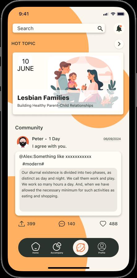 This app creates a multidimensional interactive platform for separated parents and children through tasks, emotional support, and need visualization. It not only eases separation anxiety but also helps parents better understand their children's needs and build closer parent-child relationships.
