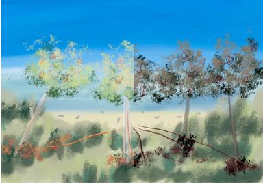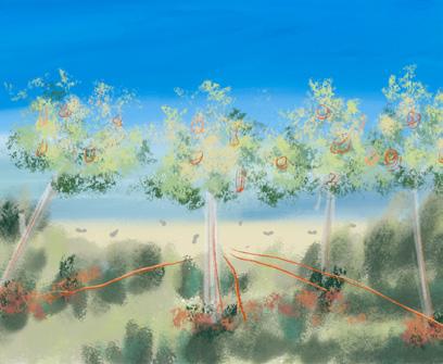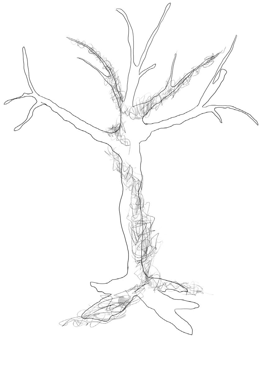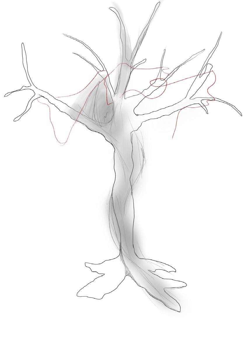 The tree symbolizes memory and renewal, while the desolate coast represents re�lection and hope.