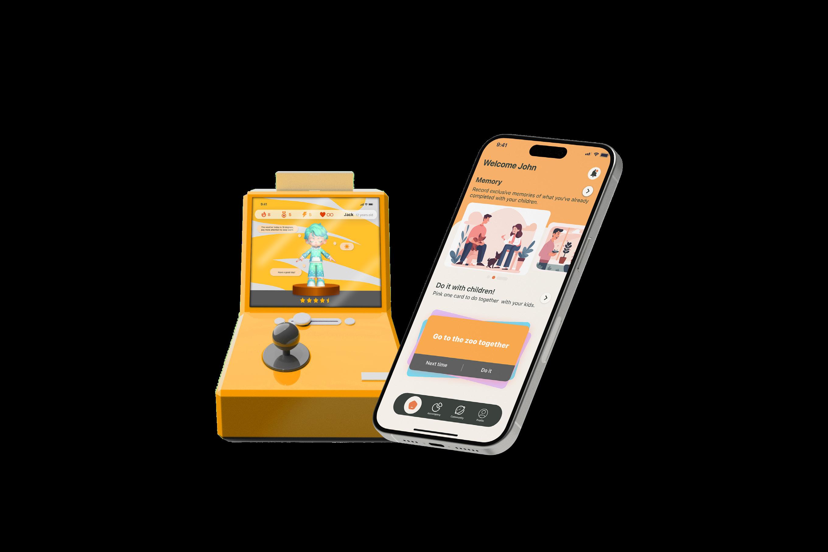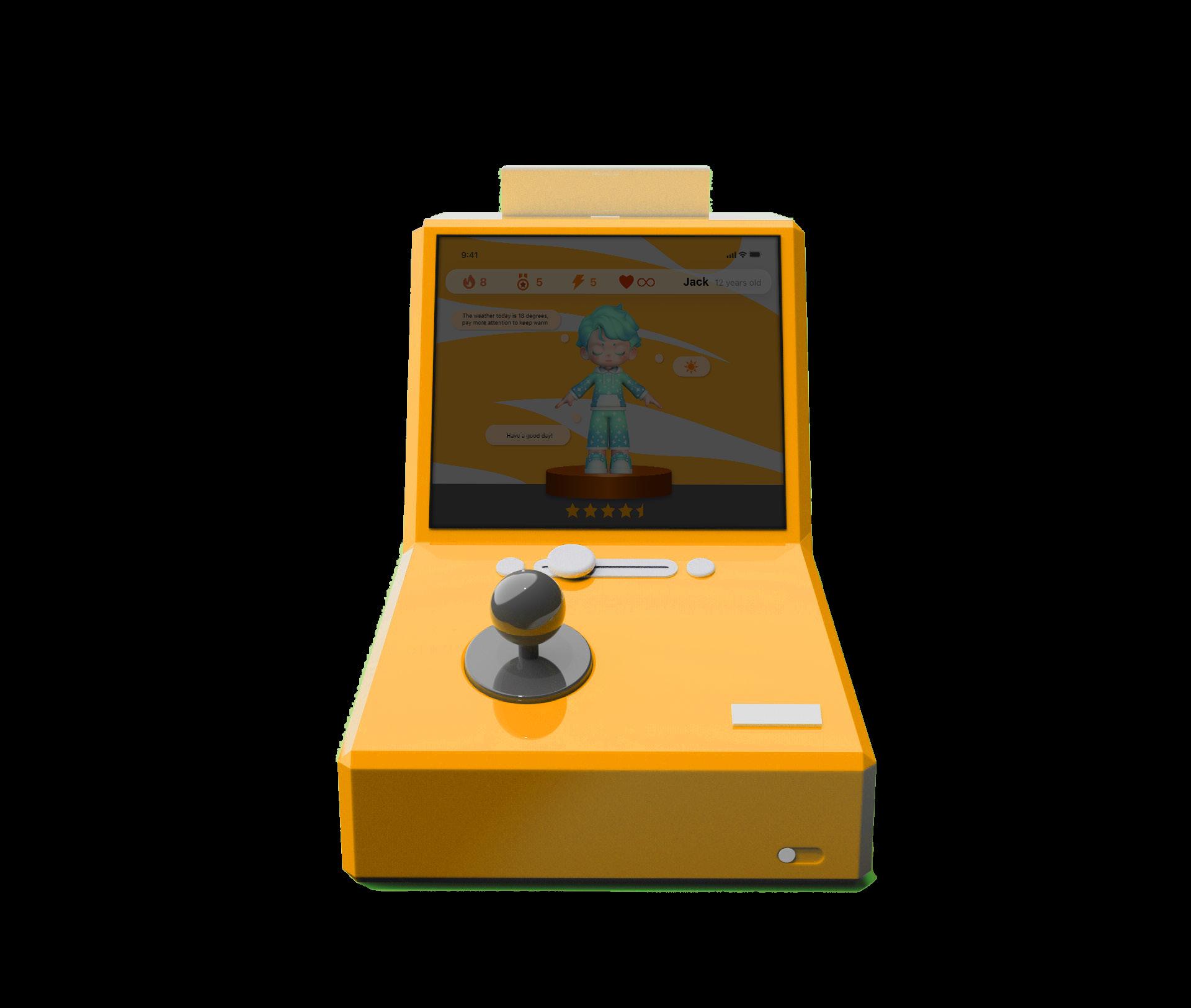 The inspiration for this product comes from arcade games, as teenagers are at an age where they love to play. It not only inherits the fun of traditional arcade games but also includes features for interaction with parents. This way, children are more willing and proactive in communicating with their parents, thereby enhancing their relationship.