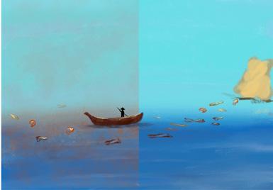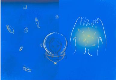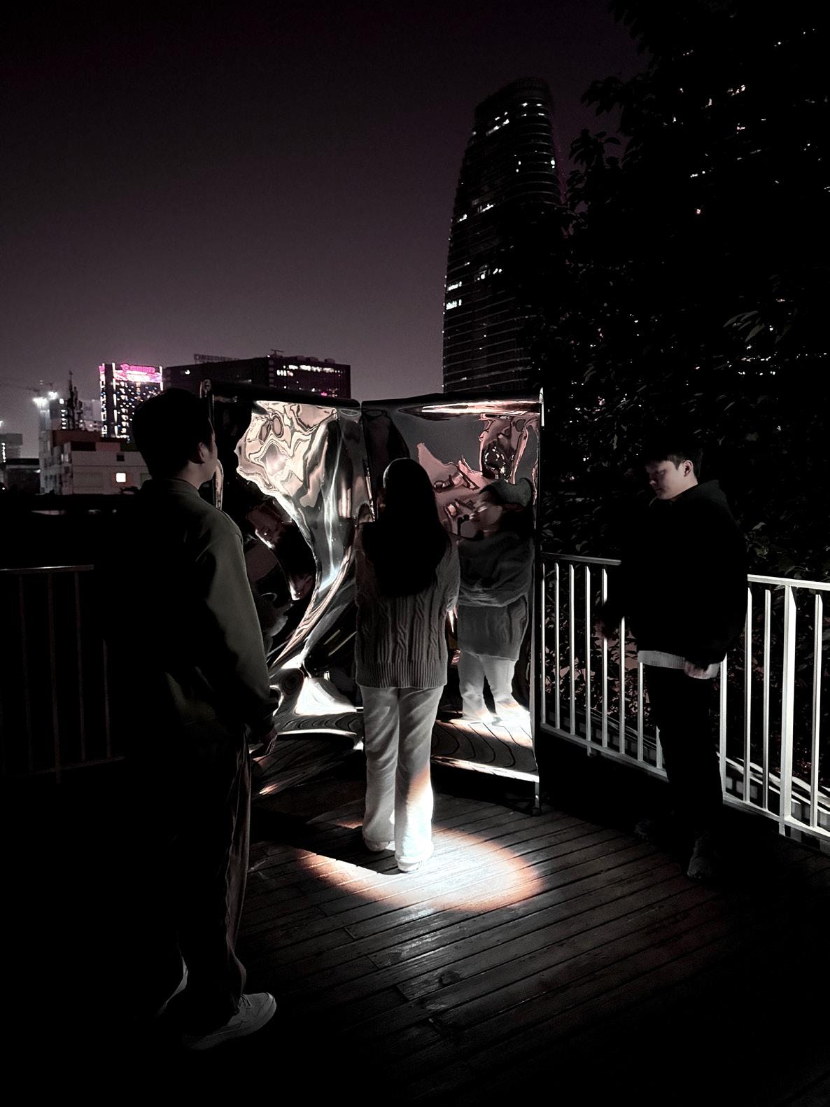 Bone fragments turn the murky seawater blue, while trash causes the waves to surge. Participants must choose to either restore the memories or let go of the past, drifting into the unknown.