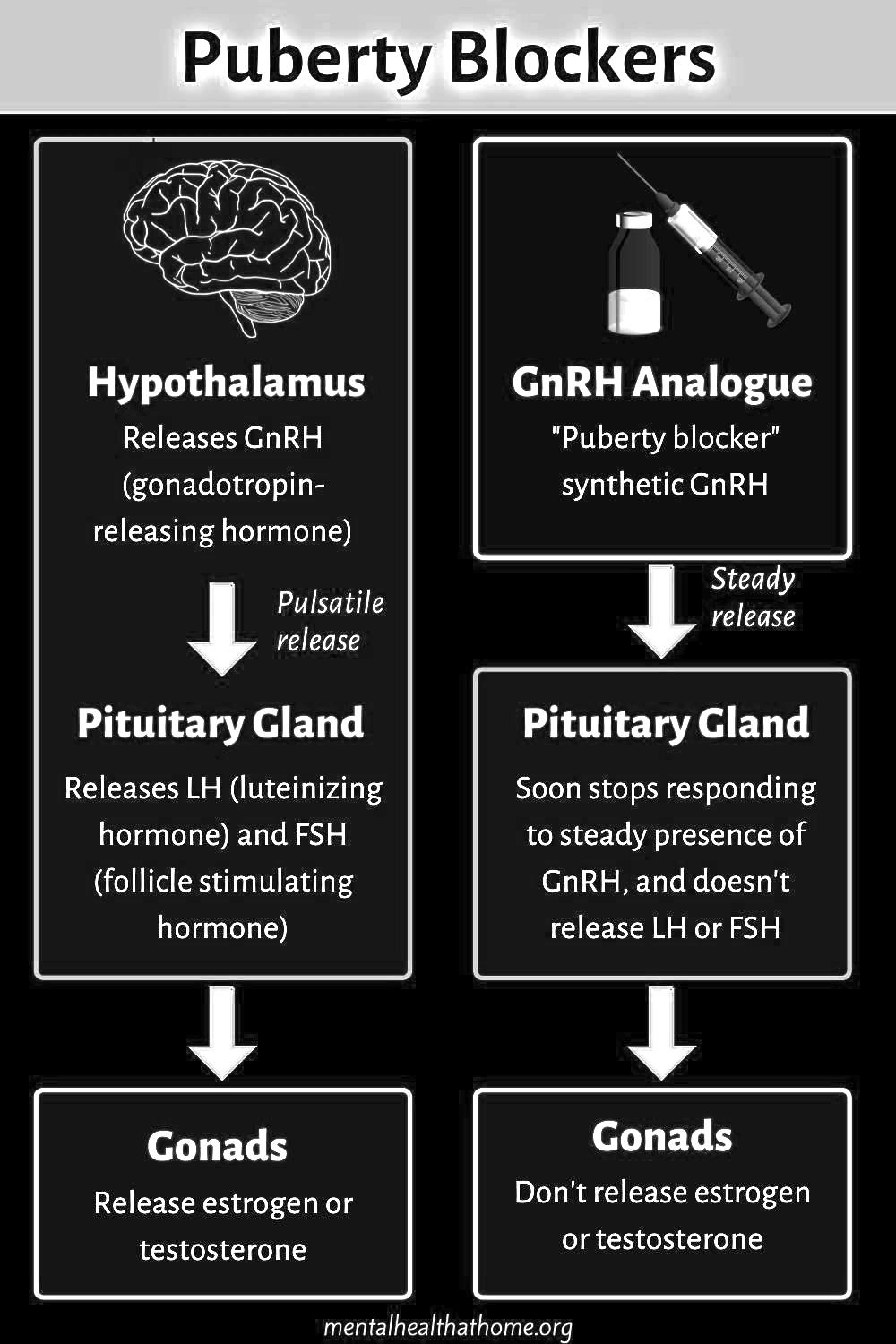 Puberty blockers are medications used to delay puberty in children. The most commonly used puberty blockers are gonadotropin-releasing hormone (GnRH) agonists.