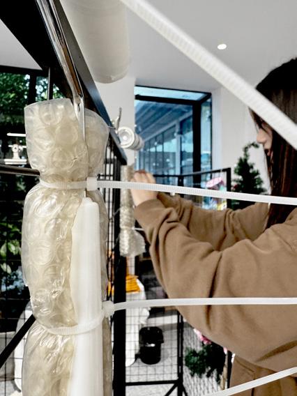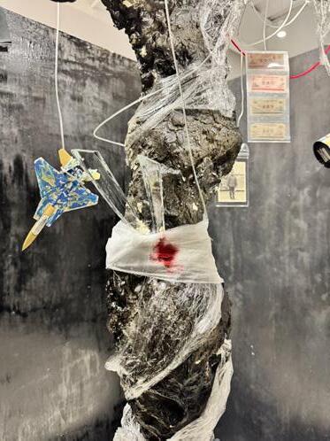 Based on the above design concepts, I decided to create a tree symbolizing 'forgetting.' During the experimental process, I used various materials such as plastic wrap, red thread, wire, and gauze to convey a sense of the tree's history and the traces of environmental pollution it has endured.