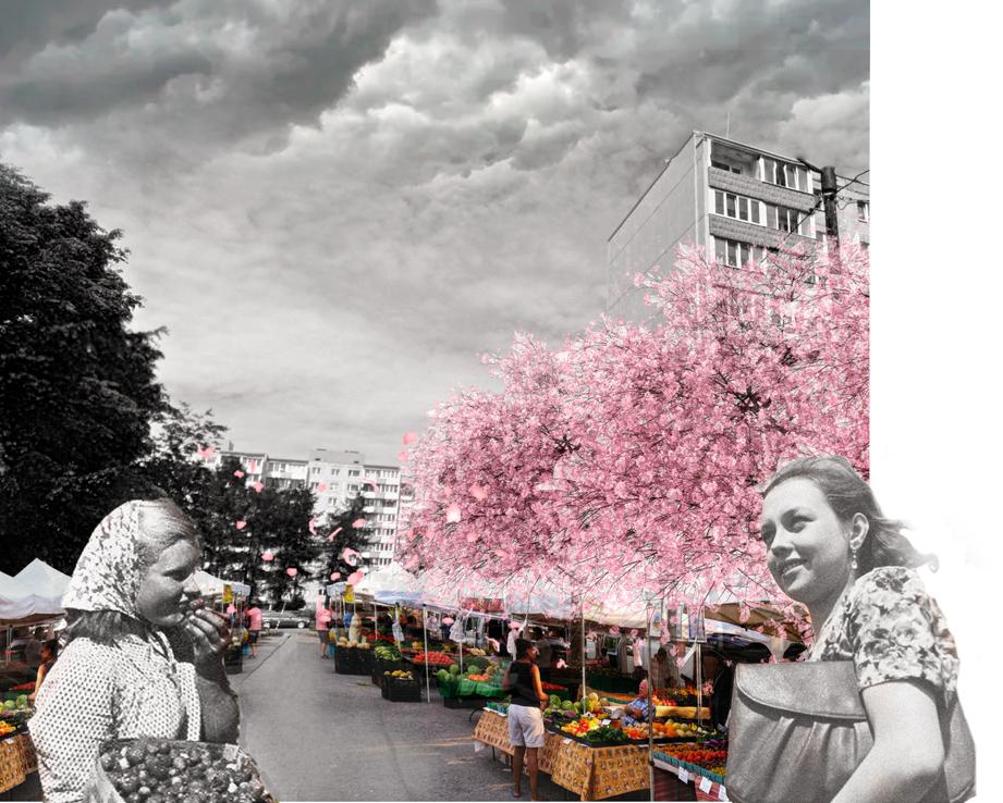 The one minute rayon, reimagines post soviet urban design and planning through tactics of circularity and community engagement. The proposal aims at bringing back a sense of place and belonging to a forgotten district in Tallinn, with a focus on micro economy as a tool to re-en ergize and activate the local community.