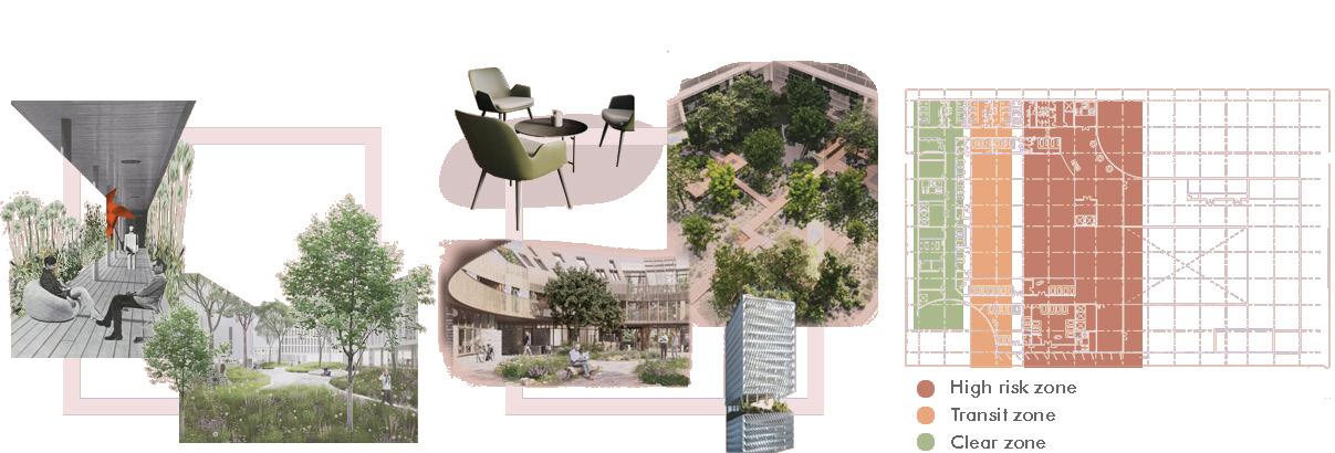 Small scale internal waiting areas counterbalanced with large cortyards to minimise infection