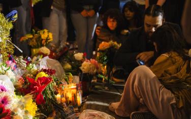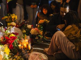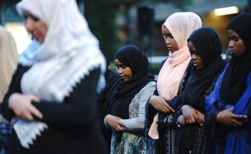 MUSLIM WOMEN PRAYING AT the Christchurch vigil at the University of Arizona on Mar. 20, 2019.
