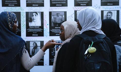 STUDENTS WRITE MESSAGES TO the victims of New Zealand’s Christchurch shooting on Mar. 20, 2019. The vigil was organized by the Muslim