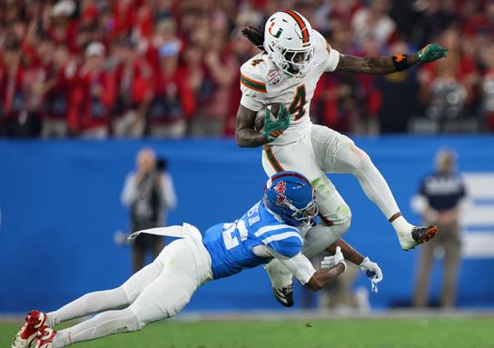 MIAMI RUNS OUT ONTO the field before the Fiesta Bowl in State Farm Stadium in Glendale, Ariz. on Jan. 8. CONTINUED ON PAGE 21