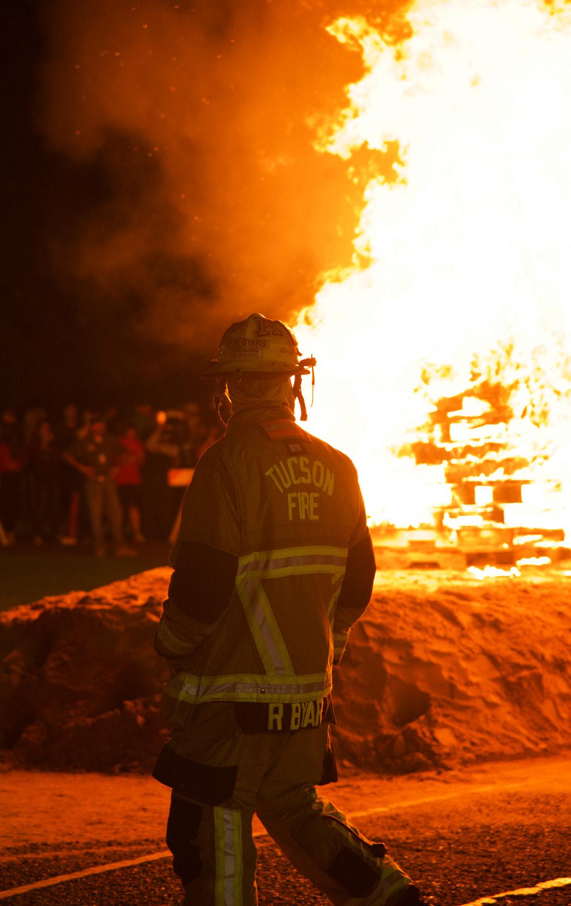 THE TUCSON FIRE DEPARTMENT monitors the fire at the University of Arizona’s an nual Homecoming bonfire and pep rally outside of Old Main on campus in October 2018. Every year, the fire depart ment helps the UA with the lighting of “A” Mountain and the Homecoming bonfire to ensure the safety of the community. At every bonfire, the Homecoming king and queen are an nounced and the Pride of Arizona marching band performs up on Old Main. This year’s bonfire is on Oct. 28.