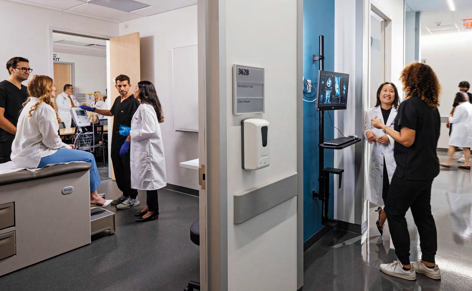 pain or breathing distress. Faculty in a nearby room interact with students through the manikin in the voice of a patient and later lead the students through a debrief to reinforce what they learned.