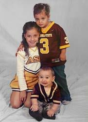 Left: Kennedy, Reagan and Grant Nolde decked out in ASU gear.