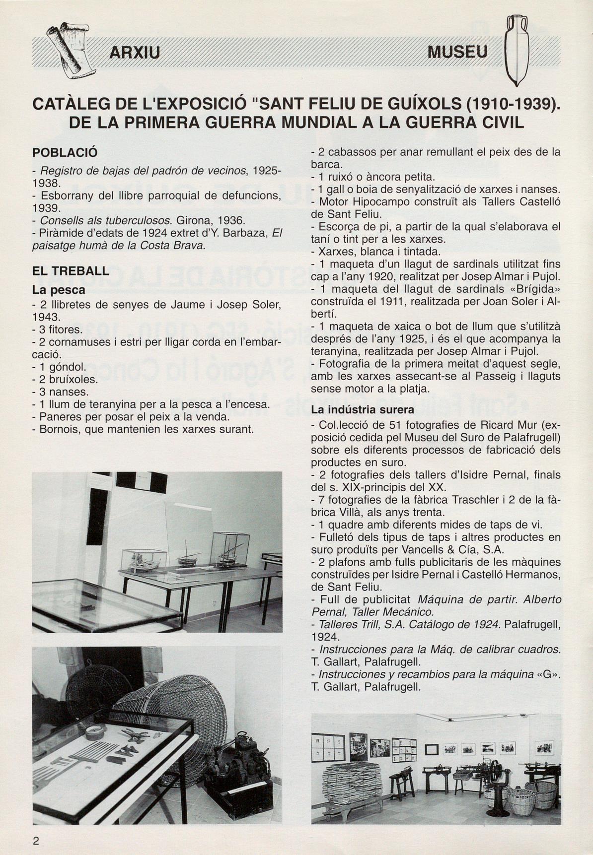 CATÀLEG DE.l'EXPOSICIÓ liSANT FELIU DE GUíXOLS (1910-1939). DE lA PRIMERA GUERRA MUNDIAL A lA GUERRA CIVil