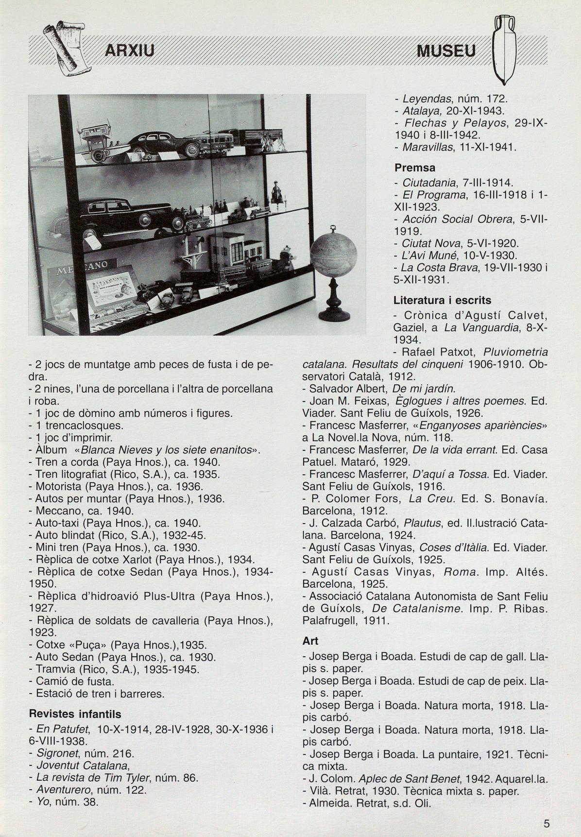 D.L. Gi.1.611·1989 Gràfiques Bigas· St. Feliu de Guixols SERVEI DE PUBLICACIONS I D'ARXIU JUNTA DEL MÙSEU D'HISTÒRIA DE LA CIUTAT ÀREA DE CULTURA Ajuntament de Sant Feliu de Guíxols