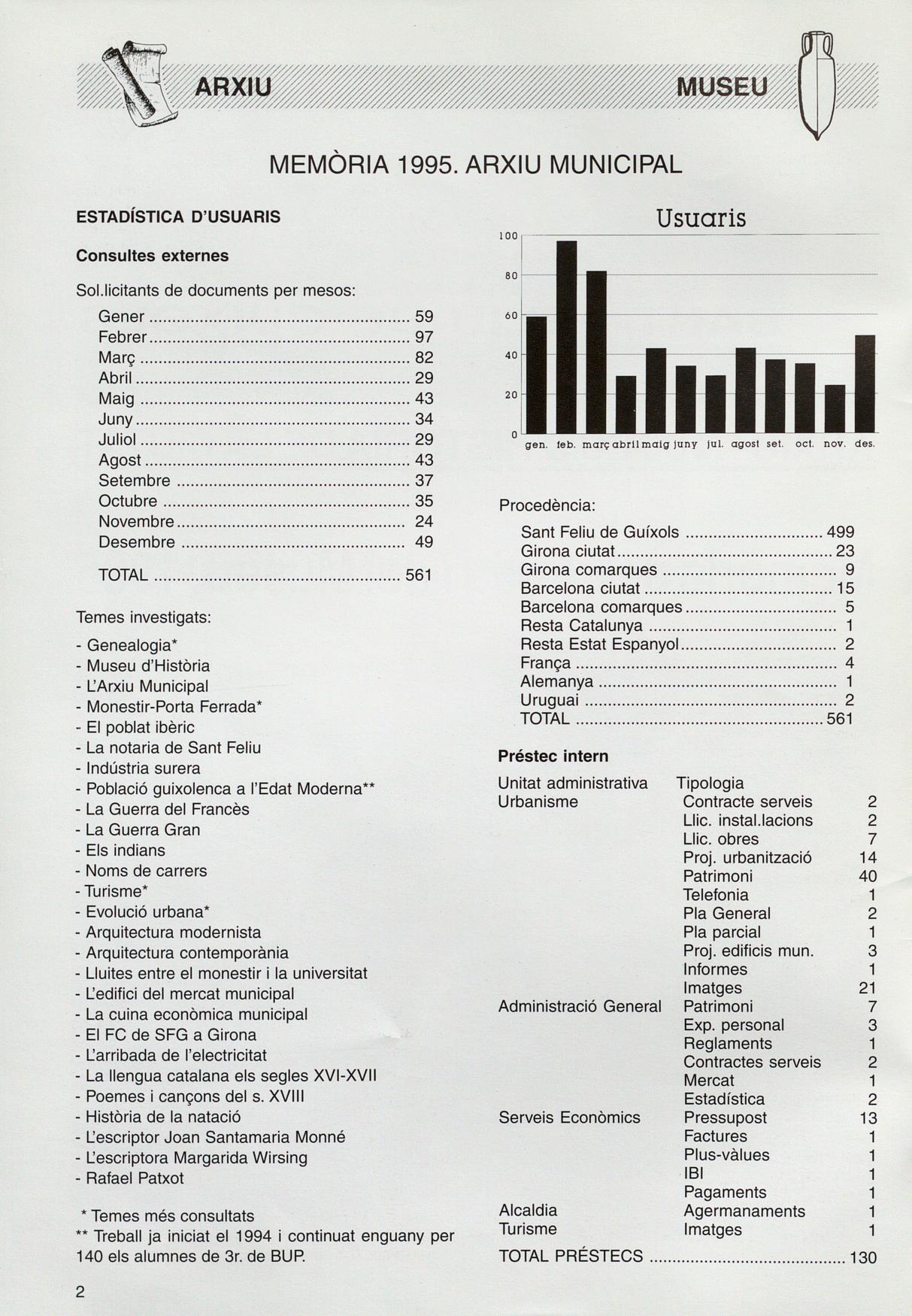Memòriade l'Arxiu i del Museu. 1995
