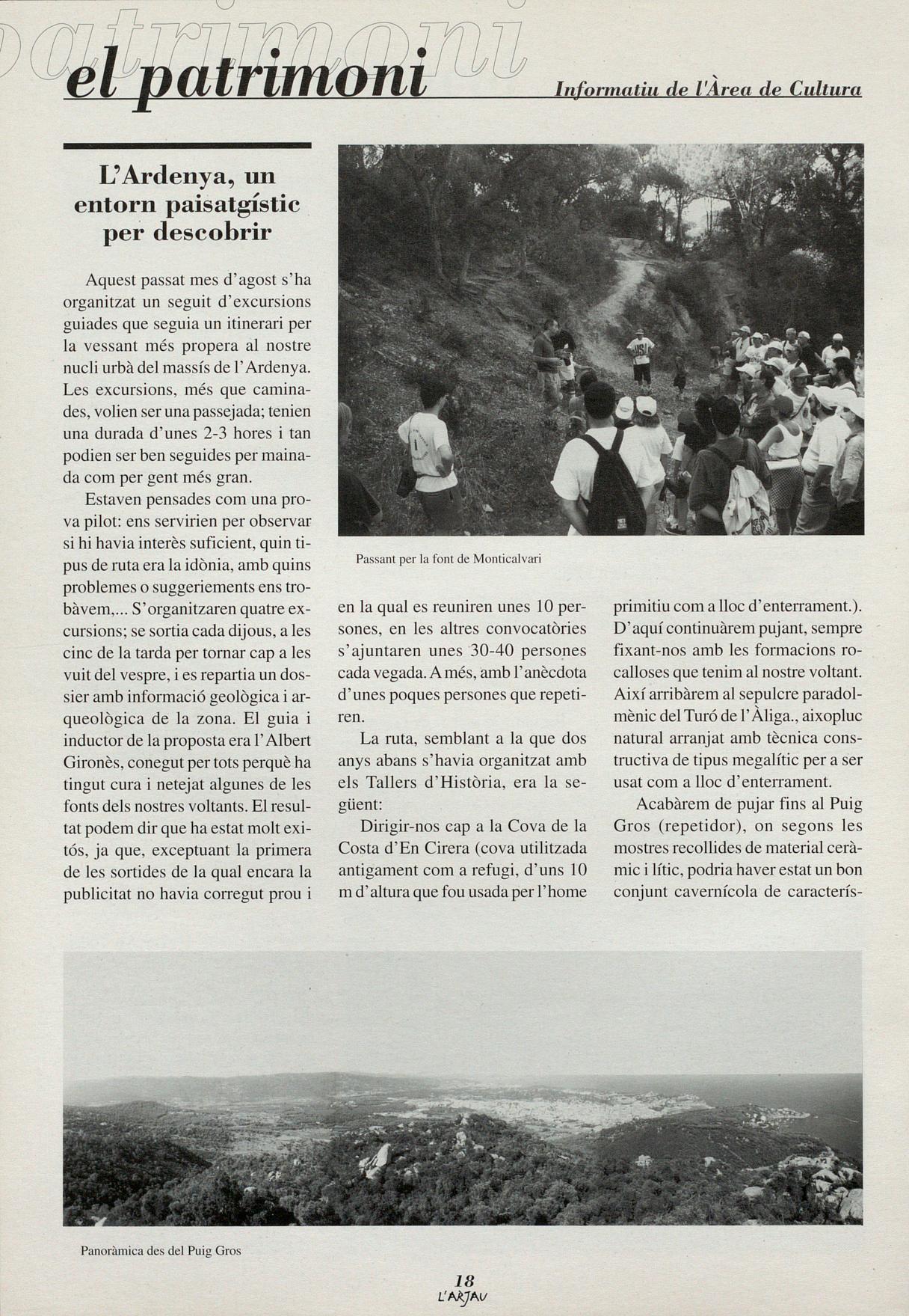 A.Gironès, S. Alemany, L'Ardenya, un entorn paisatgístic per descobrir. C. Montalbán, N. Colomeda, Valoració de les visites guiades "Secrets del Monestir" i "Les Nits Màgiques" durant l'estiu de 1998.