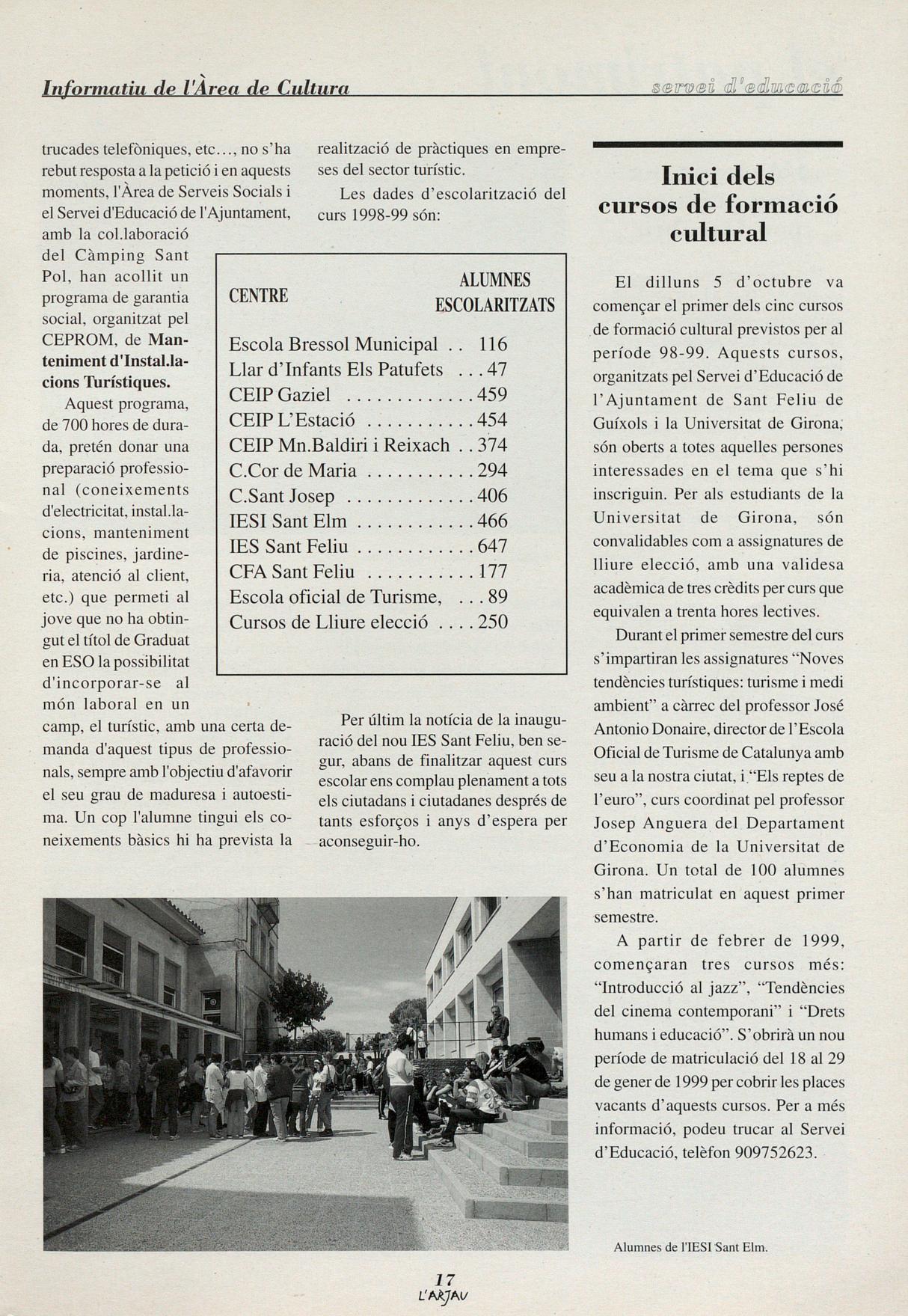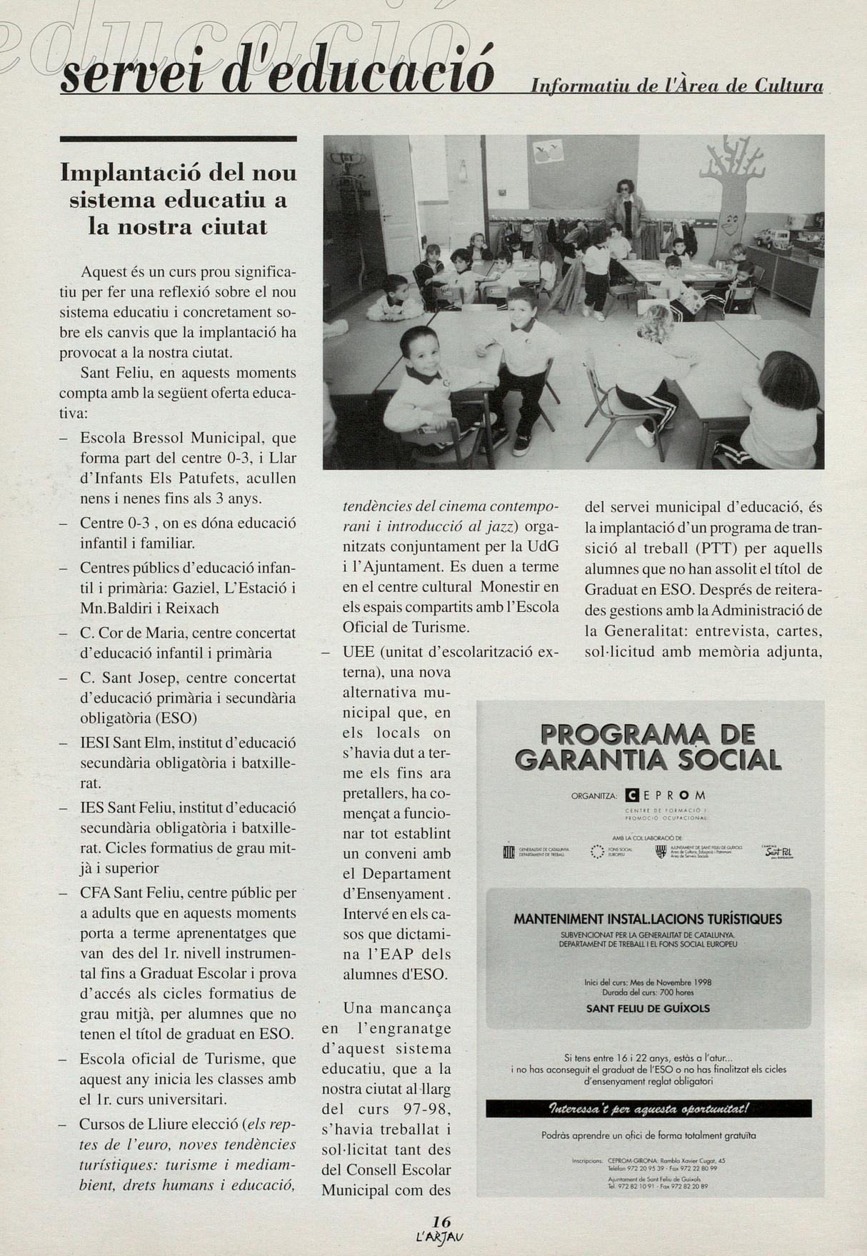 Implantació del nou sistema educatiu a la nostra ciutat Inici dels cursos de formació cultural