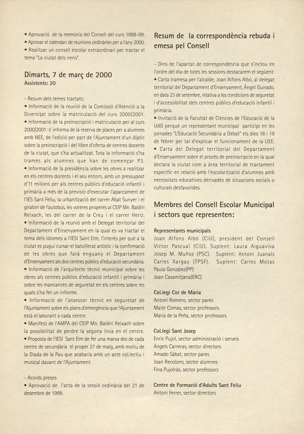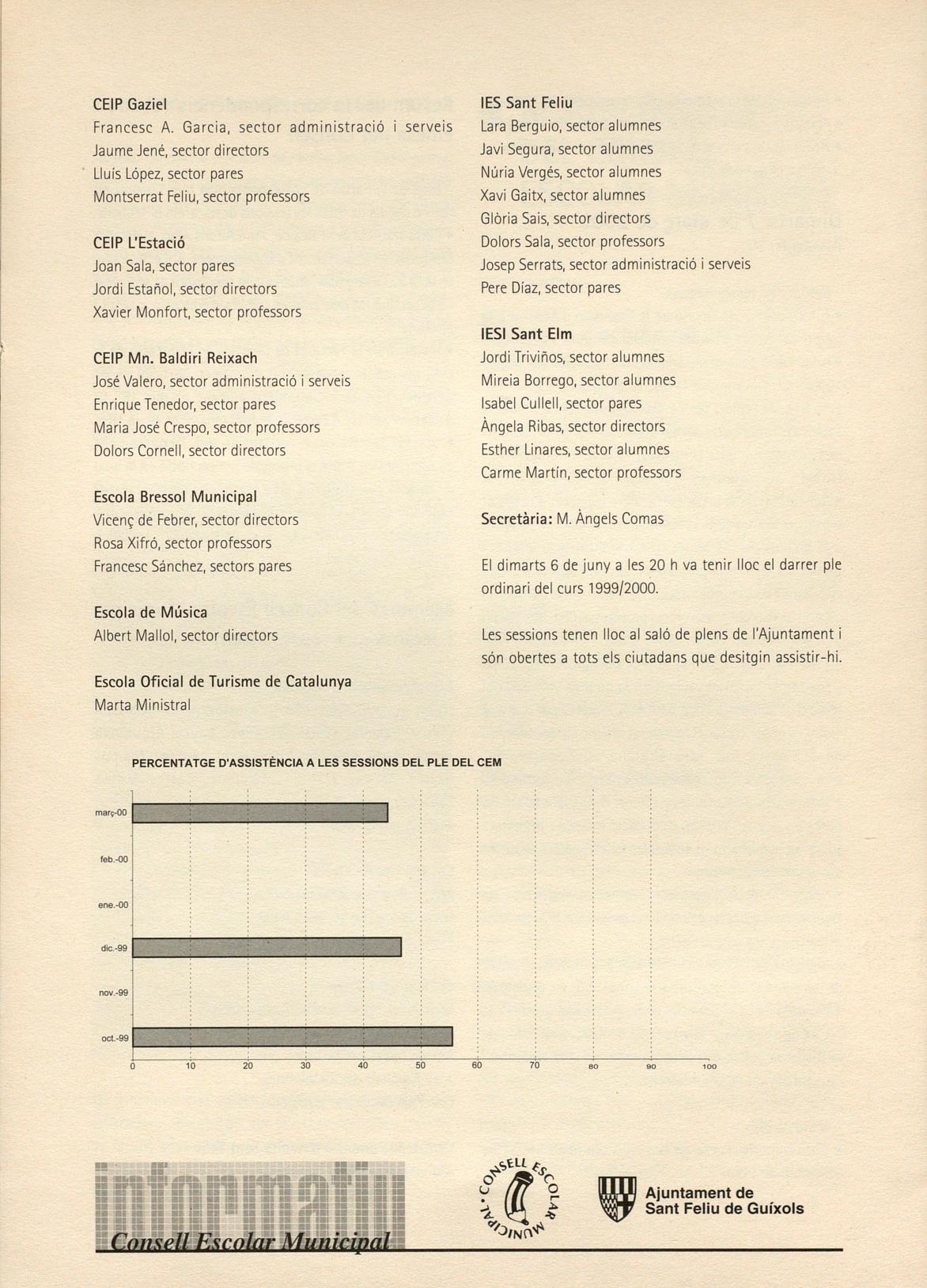 El dimarts 6 de juny a les 20 h va tenir lloc el darrer ple ordinari del curs 1999/2000.