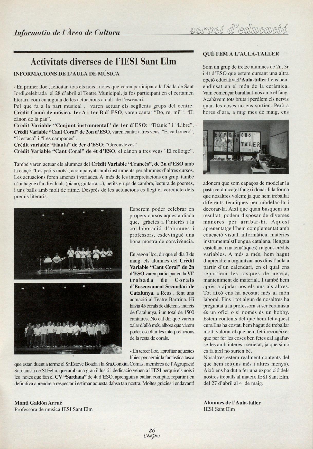 Informació de les activitats organitzades per l'Ajuntament durant el curs 1999/2000, adreçades als escolars i d'altres activitats en les quals l'Ajuntament hi col.labora.