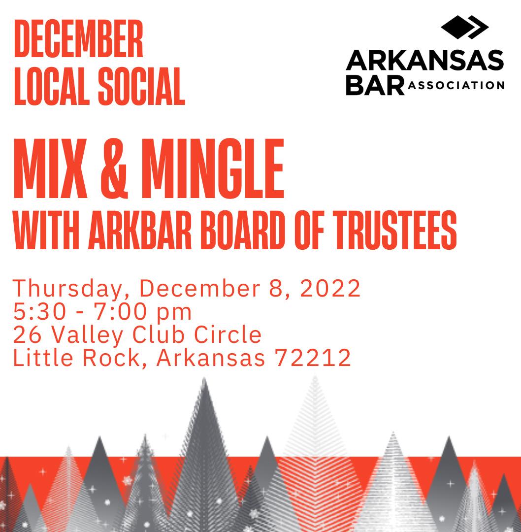Join us for a fun mix and mingle event for the Board of Trustees, local bar members and law students at the home of ArkBar President Joe Kolb.