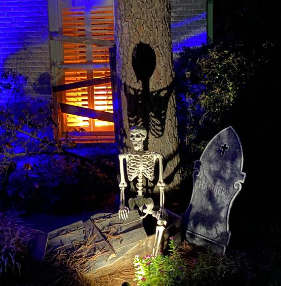 ArkBar’s President Joe Kolb has a hobby that fuels his creative side this time of year—decorating his home for Halloween. A project that has grown over the years, he transforms his front yard into the “Needlehaven Cemetery and Wedding Chapel” scene each October. The elaborate display of the skeleton bridal party takes over the entire front yard as well as the dining room which can be seen from the yard. He builds all the props himself including the giant spider-covered pergola and the intricate stain glass window for the wedding chapel that sits at the apex of the roof and must be mounted by renting an extra-large ladder.